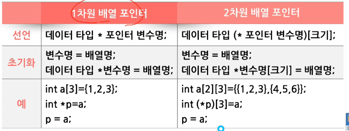 배열 포인터를 &arr[0]으로 초기화하는 대신, 간단하게 arr로 초기화 가능 배열 포인터 p를 2차원 배열처럼 참조 가능 배열 포인터를 이차원 배열에 접근하기 위한 용도로 사용 2차원 배열에 대한 포인터는 열크기에 따른 변수 선언이 필요 배열 포인터의 증감 연산은 열 크기만큼 이동