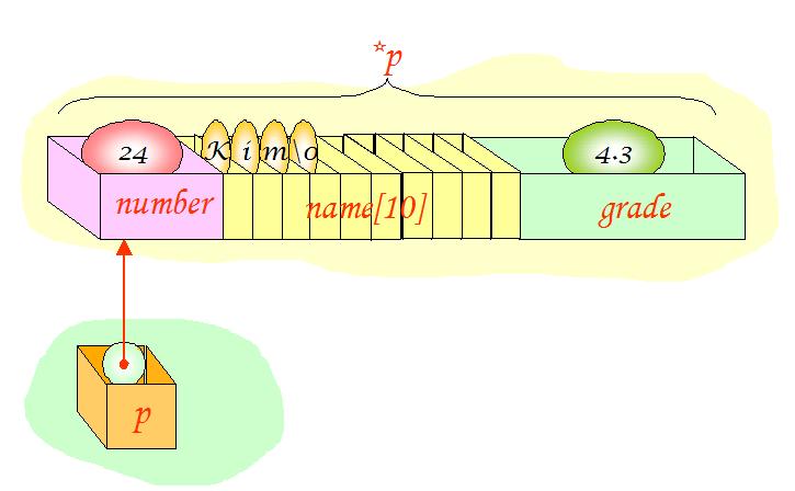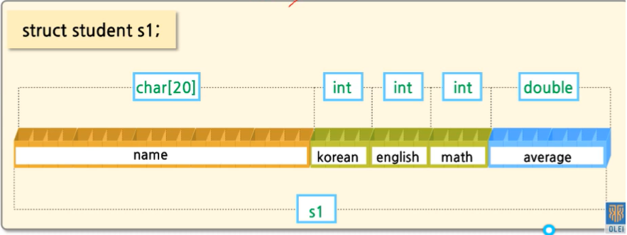 - 구조체의 멤버로 일반 변수 뿐만 아니라 배열이나 포인터 선언 가능