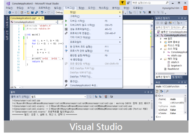 ‘디버깅 시작’ 누르기