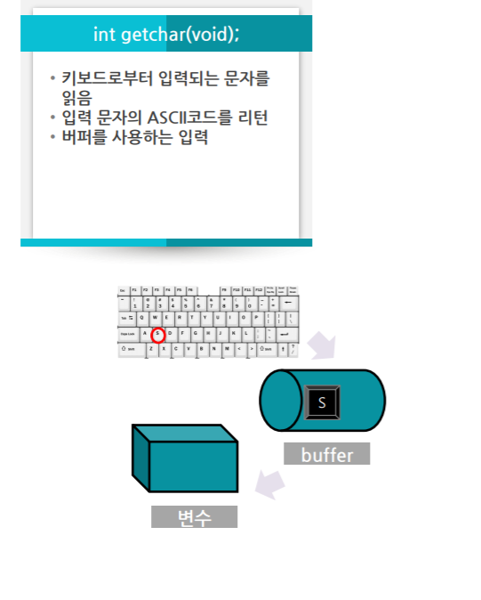 - 입력문자 ASCII코드 값을 리턴, 오류 시는 EOF리턴