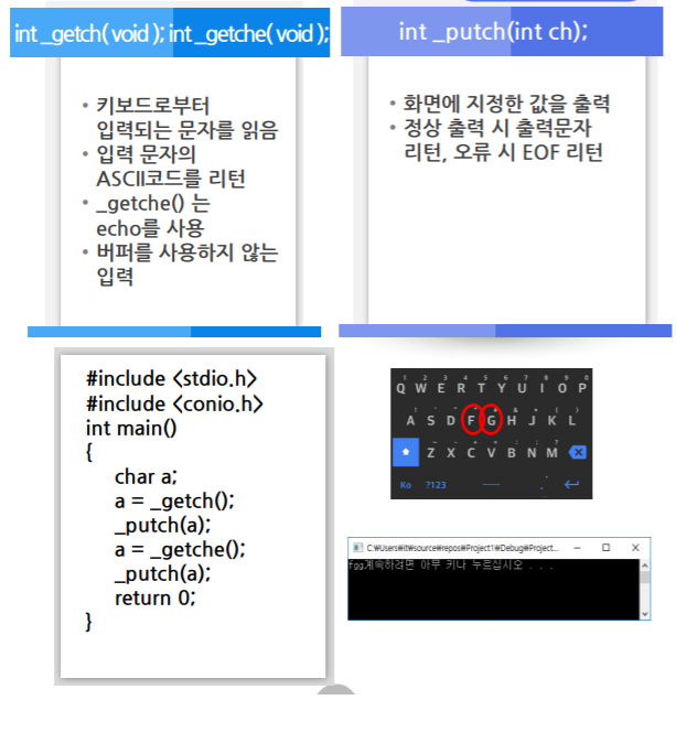 3) _getch() _getche() _putch()- 지정한 스트림으로 부터 문자 읽기