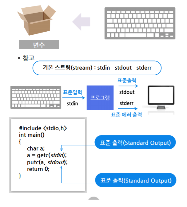 - 정상 출력 시 출력문자 리턴, 오류 시는 EOF리턴