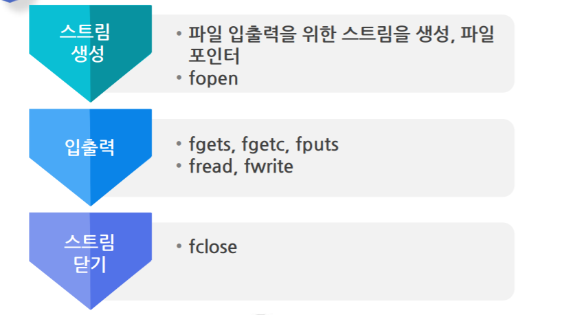 파일 입출력을 수행 하려면 먼저 fopen함수를 이용하여 파일을 열어야함